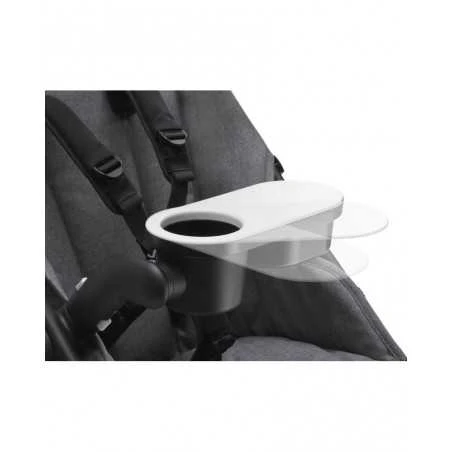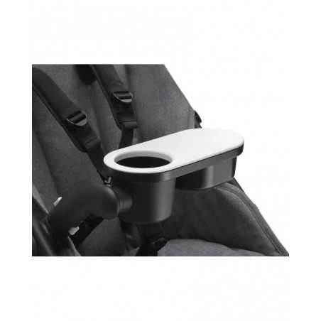 Bugaboo Fox Tray tarjottin soveltuu hyvin juomapullolle, syötävälle sekä leluille. Liukuva kansi, joten eväät on helppo ottaa esiin sekä mukiteline, joka pitää pullon paikallaan. Voidaan nostaa pystyasentoon.