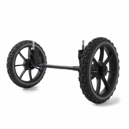 Quad Kit akseli ostettavissa erikseen. Akseli tarvitaan, jotta uudet kiinteät pyörät saa kiinnitettyä oikealla tavalla.