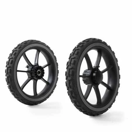 - Isot, kiinteät renkaat helpottavat kulkua vaikeassa maastossa